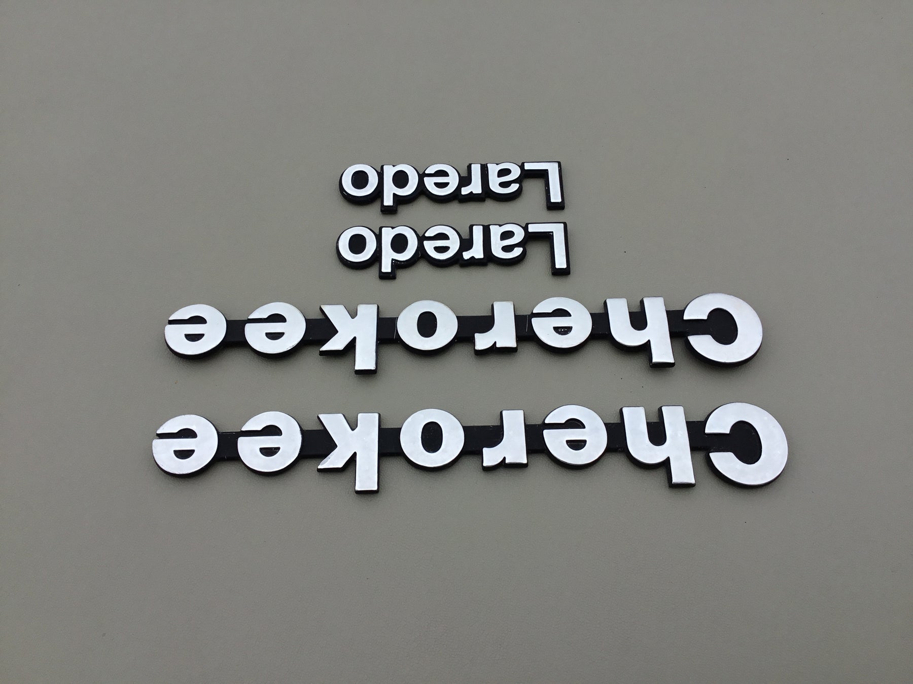 OEM 1984-1996 Jeep Cherokee Laredo Fender Emblem Badge Set